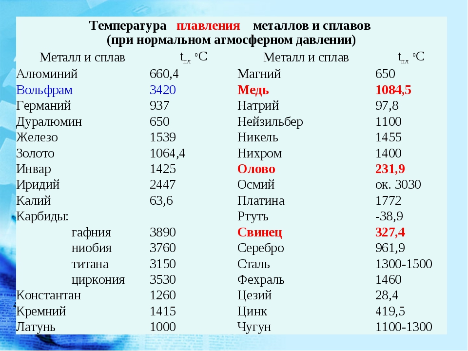 (Температуры плавления этих минералов, указанные в таблицах, на самом деле являются температурами плавления высокотемпературных полиморфов.)