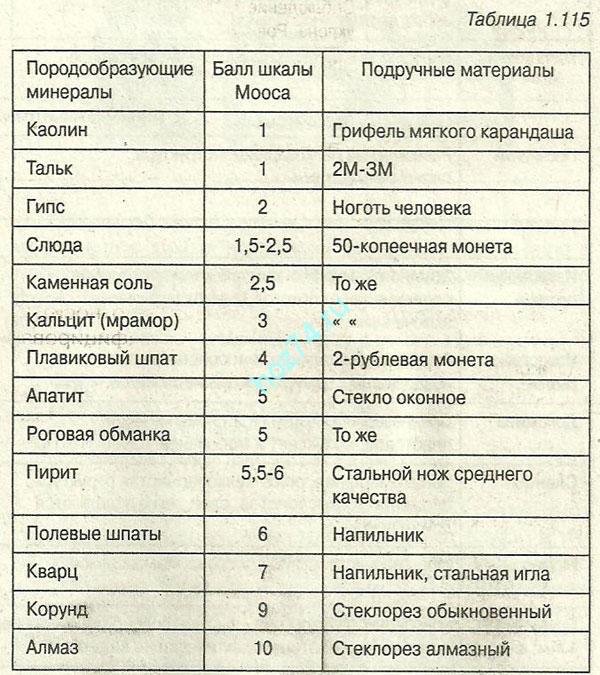 Каждый из которых тверже предыдущего и способен оставить на нем царапину. Значение твердости образца находится между последним более мягким минералом и первым более твердым. В шкале 10 делений (минералы от талька до алмаза), она нелинейная, может применяться в любых условиях, дает быстрый, хотя и весьма приблизительный результат.