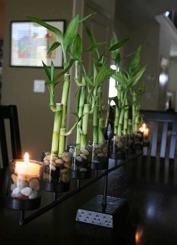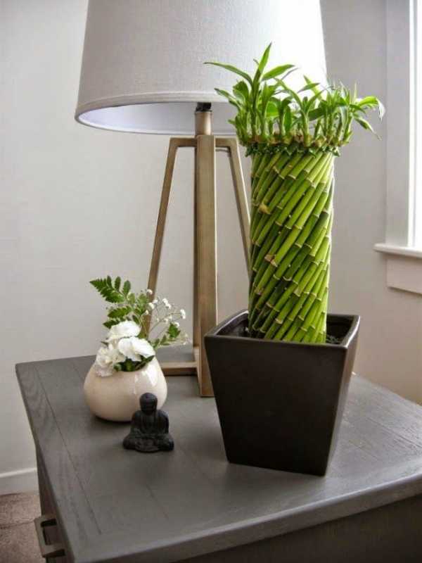 Сами стебли бамбука вы можете заставить закрутиться и повернуться в самые разные стороны. Именно это помогает проявить фантазию, сделать интерьер особенно неповторимым и украсить любимые места этим изворотливым цветком!