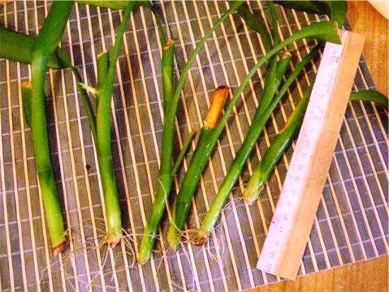 - Промойте корни бамбука и обрежьте те, которые уже несколько подгнили или отличаются длиной.