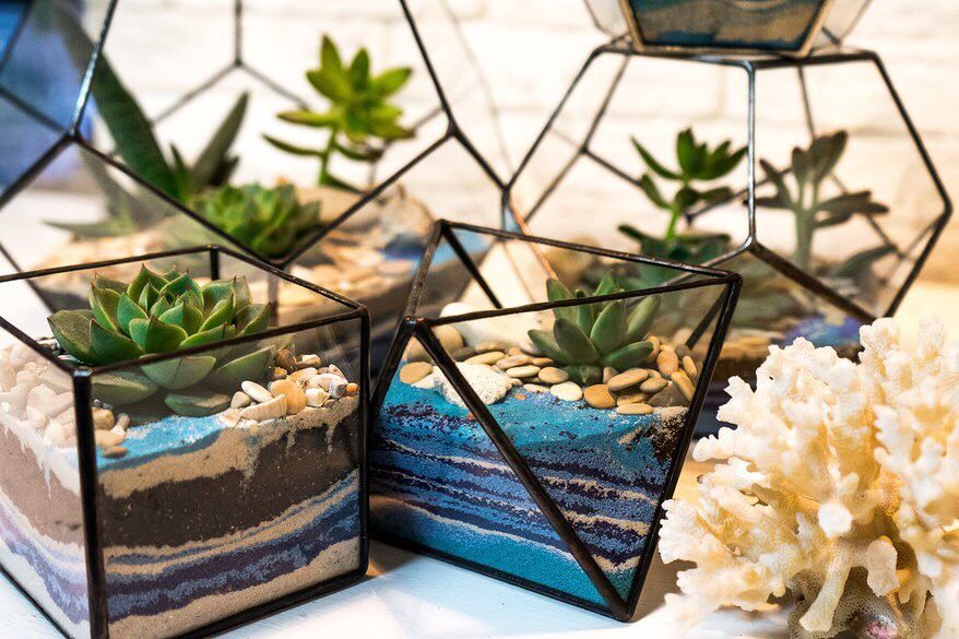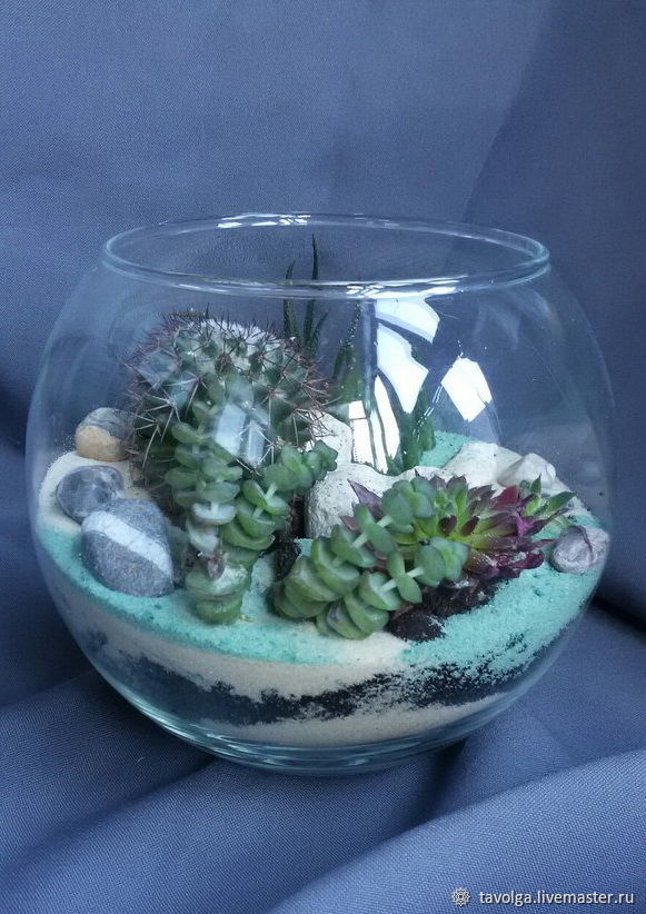 Наиболее популярны кактусовые флорариумы и суккулентные флорариумы. Пейзажные композиции