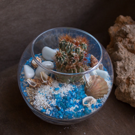 Кактусы также подойдут для начинающих флорариумов, так как не нуждаются в особом уходе. Популярны среди суккулентов — алоэ, столетник, молочай, толстянка, среди кактусов — астрофитум, опунция, ребуция, нотокактус.