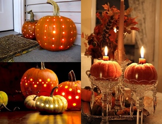 В украшении вашего дома, конечно же, должны присутствовать тыквы. На тыквах разнообразного размера вы сможете нарисовать рожицы и расставить их на полках. Также из тыкв вы можете сделать интересные композиции, которые также смогут занять достойное место в вашем доме в этот праздник.