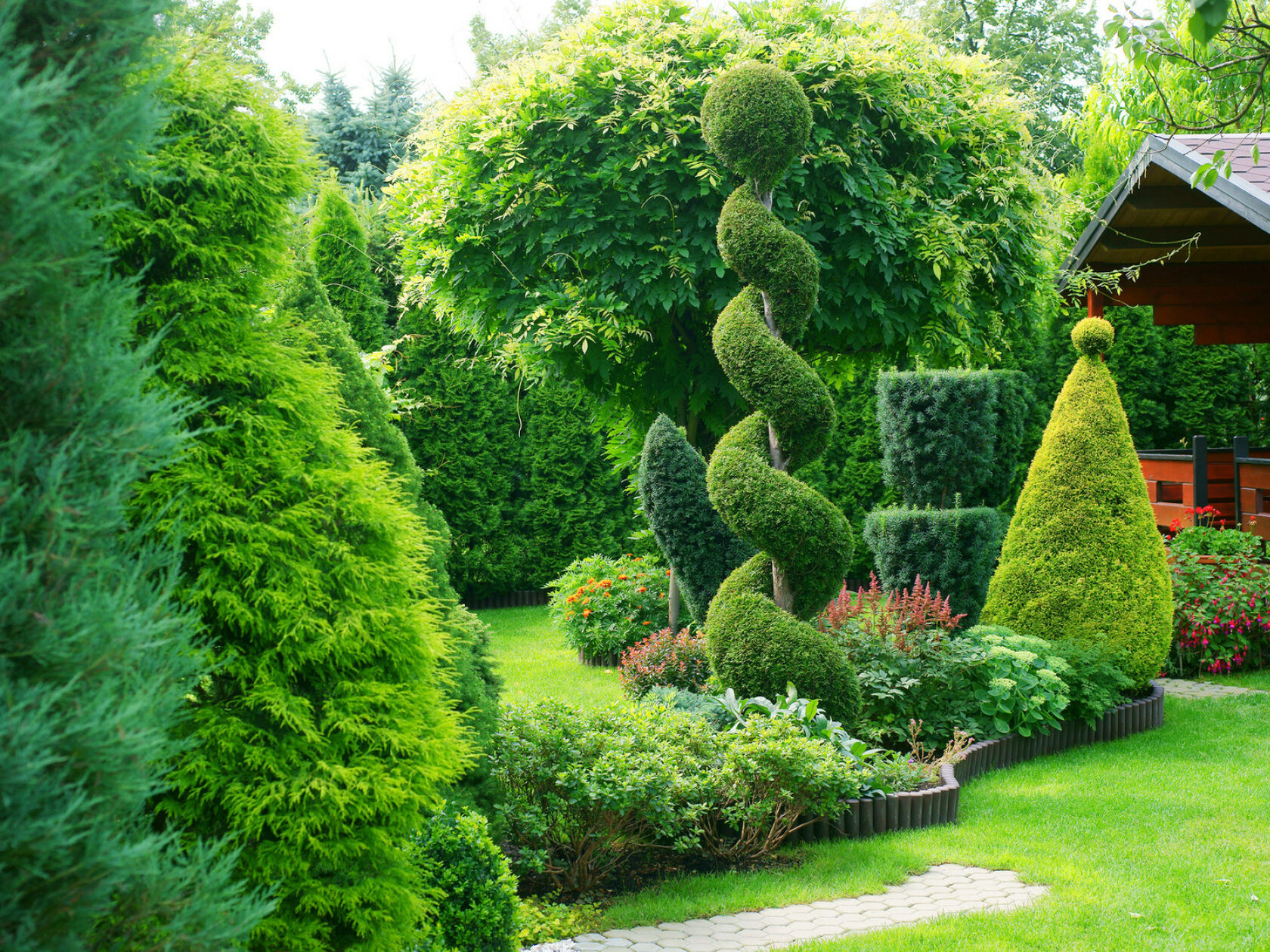 Насыщенное сочетание хвойных растений на приусадебном участке