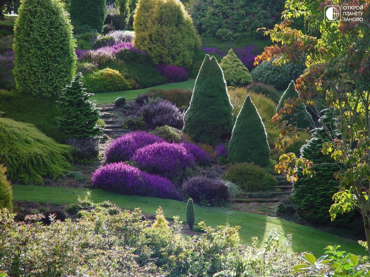 Дизайн сада с хвойными растениями: бордюр и вересковый сад