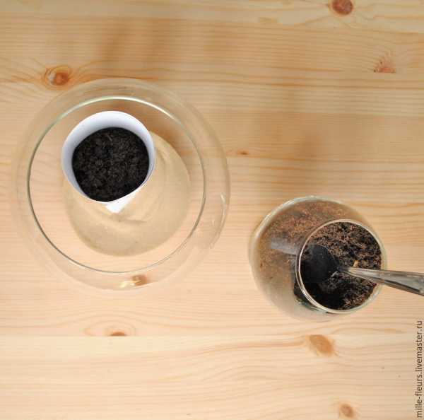 4. Берём вазу и насыпаем на дно немного песка, примерно 1-2 см: