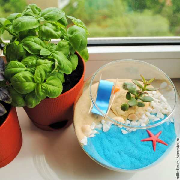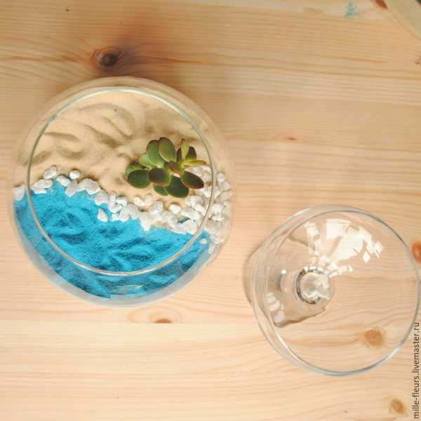 17. Флорариум готов! Ставим его в хорошо освещённом месте, поливаем один раз в две недели ложечкой воды и наслаждаемся нашим собственным пляжем: