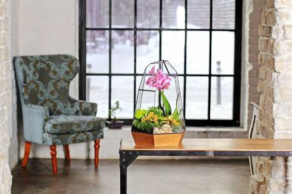 Замечательная возможность проверить свои творческие навыки и воссоздать дикий лес Амазонии. Для максимального эффекта подойдет объемная цветочная витрина (ее еще называют палюдариум), где можно высадить сразу несколько видов разных крупных растений, а для миниатюры стоит выбрать небольшую емкость с открытым верхом.