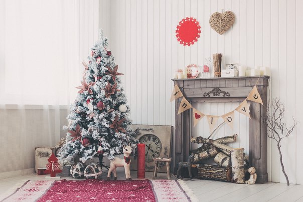 Мелкая новогодняя атрибутика придаст декорации жилой вид и реалистичность. Кроме того, эти предметы можно брать в руки во время позирования. Это могут быть: