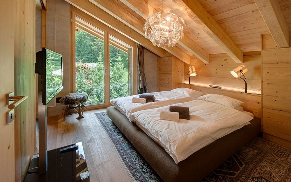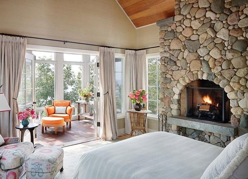 В доме Элисон и Джима Лакманов в Айдахо каменные стены, высокие потолки с деревянными балками и яркие узорчатые принты создают идеальное спальное место.
