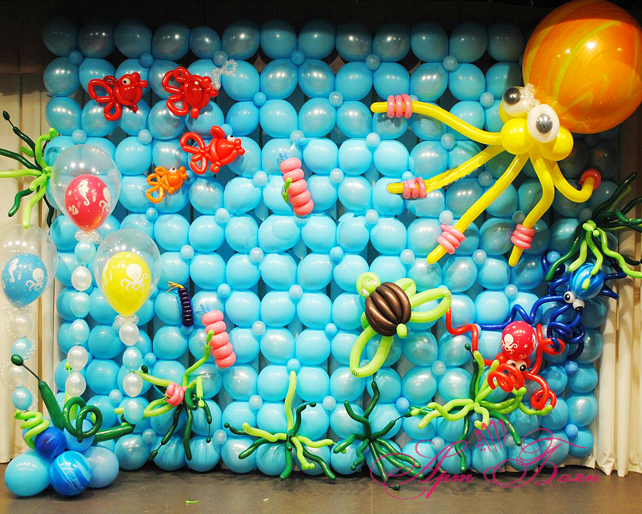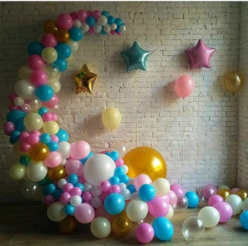 В студии воздушные шары являются, как правило, универсальными декорациями. Ими можно украсить любое помещение, развесив на стены, рассыпав по полу, сделав из них гирлянду или арку. Особой популярностью пользуется идея создания букетов и прочих фигур из шариков.