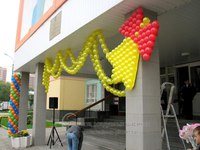 Эффект вызывают большие букеты из воздушных цветов. Чтобы создать такой шедевр, делают 10-15 цветов, а для закрепления композиции его перевязывают шёлковой лентой, или бантом из ещё одного воздушного шарика.