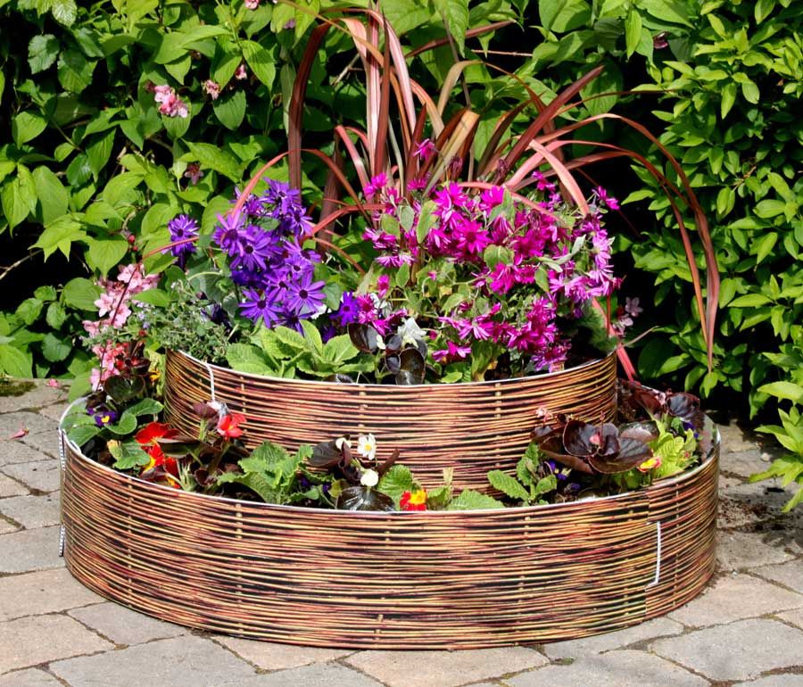 Клумба лучше смотрится, если ее края будут приподняты над землей. А чтобы они не осыпались, их удерживают ограждением из камня, кирпича, ивовых плетенок. Последний шаг – высадка цветов и их полив.