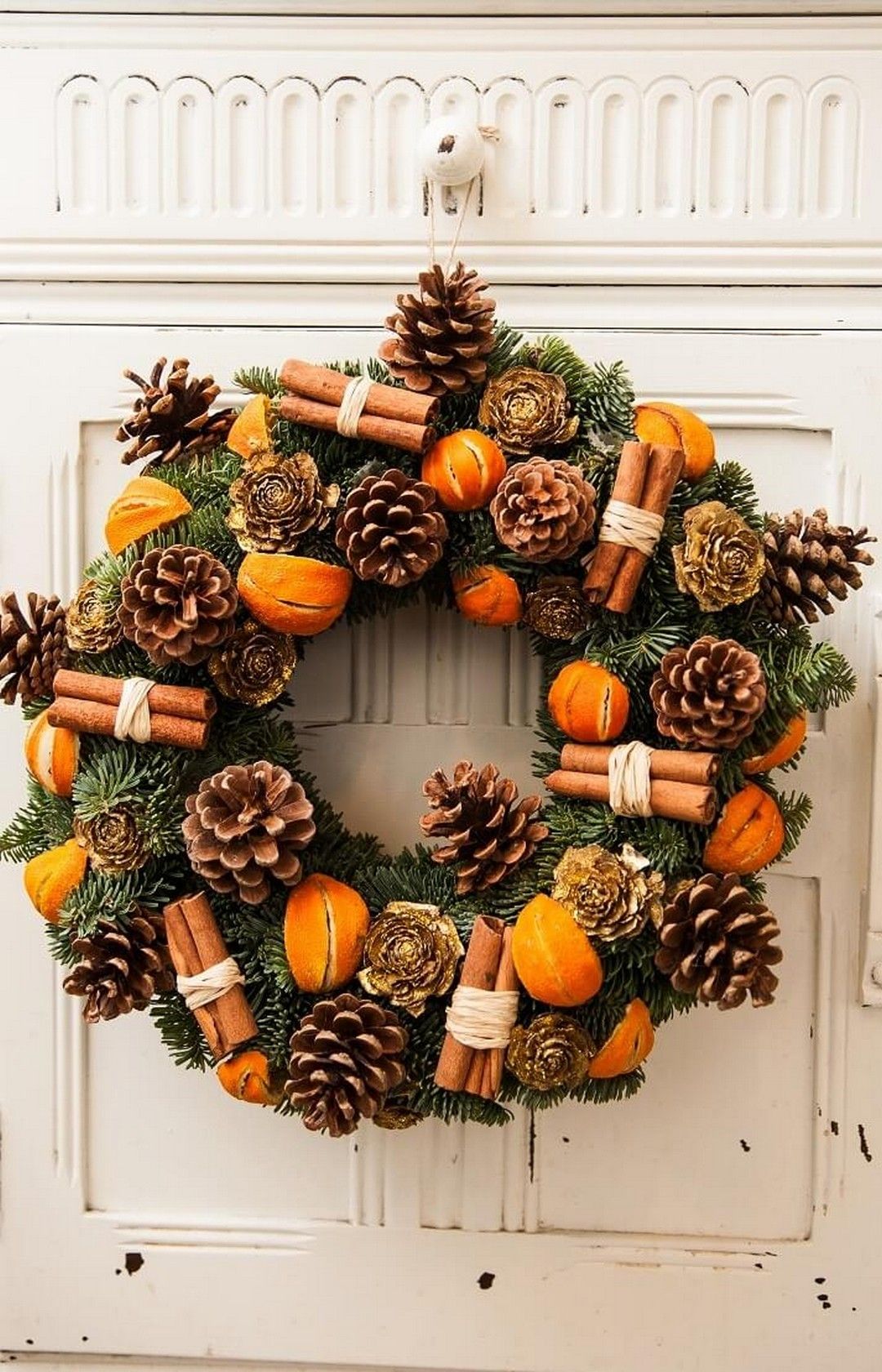 Экологичный и ароматный, такой венок можно использовать как украшение не только в рождественские праздники, но и круглый год.
