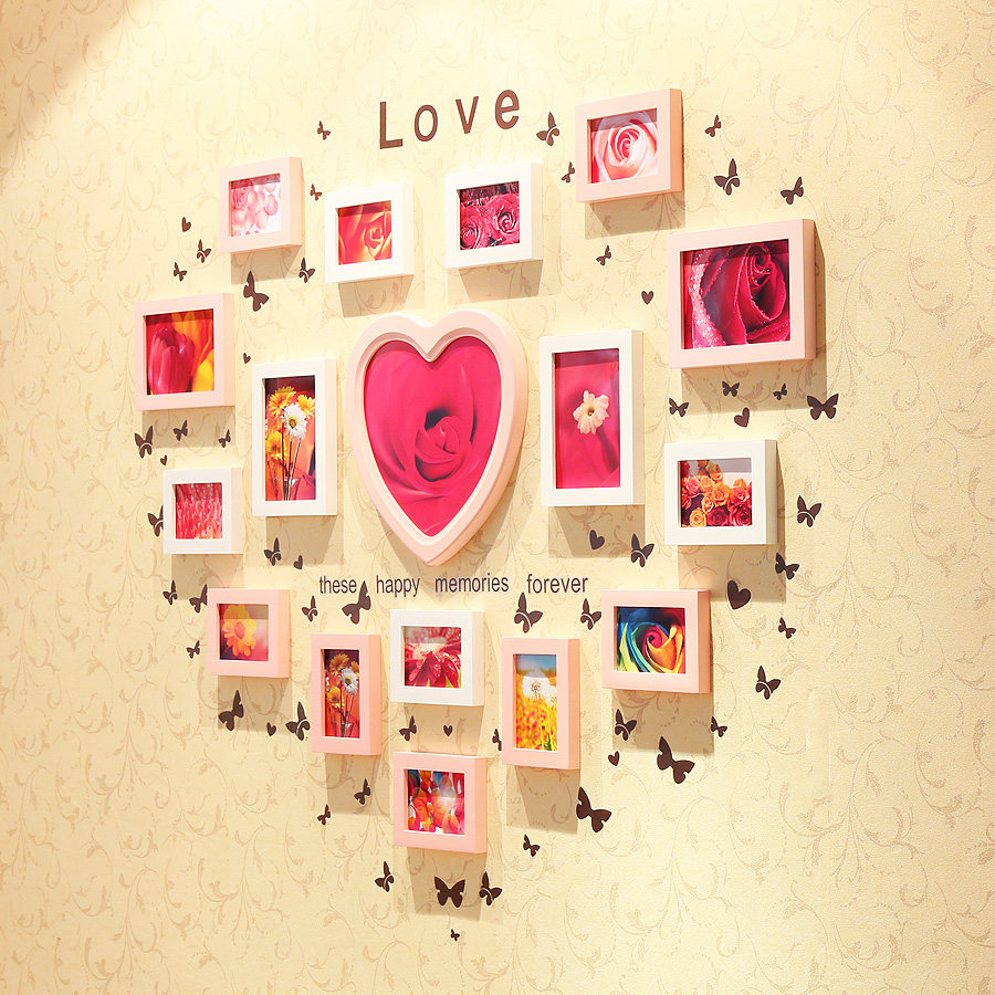 Создать уютную домашнюю атмосферу поможет композиция в виде генеалогического древа. Молодой семье подойдет рамка в виде большого романтического сердца.