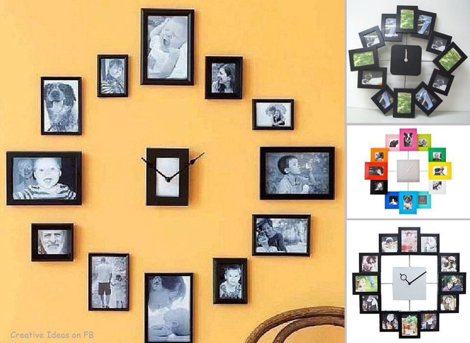 Выше был описан вариант с фото на нитке — так называемой гирляндой. В случае с рамками этот способ также актуален, но не стоит увлекаться количеством фото и помнить о том, что рамки должны быть одного размера.