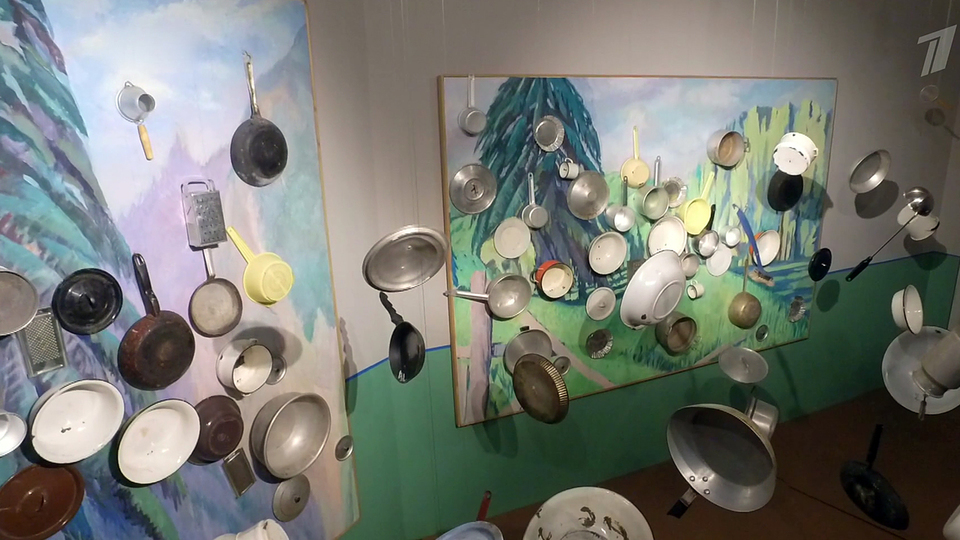 Так, в инсталляции «Происшествие в коридоре возле кухни» (1989), все кастрюли и кастрюли словно взлетели на воздух (почти как в «Мойдодыре» Чуковского), а присутствует «задокументированный свидетельский рассказ» о событии, издевательски создающий ситуацию реального события. Тот же парадоксальный механизм отношения к чуду как к нормальной данности представлен в инсталляции «Человек, улетевший в космос из своей комнаты» (1985), где скрупулезно изложены рассказы соседей о теории этого человека, а мы видим пустая катапульта и дыра в потолке этой мужской комнаты. Комната забита советскими памятными вещами и плакатами – так человек убегает в неизвестность от мира, пропитанного советскости.