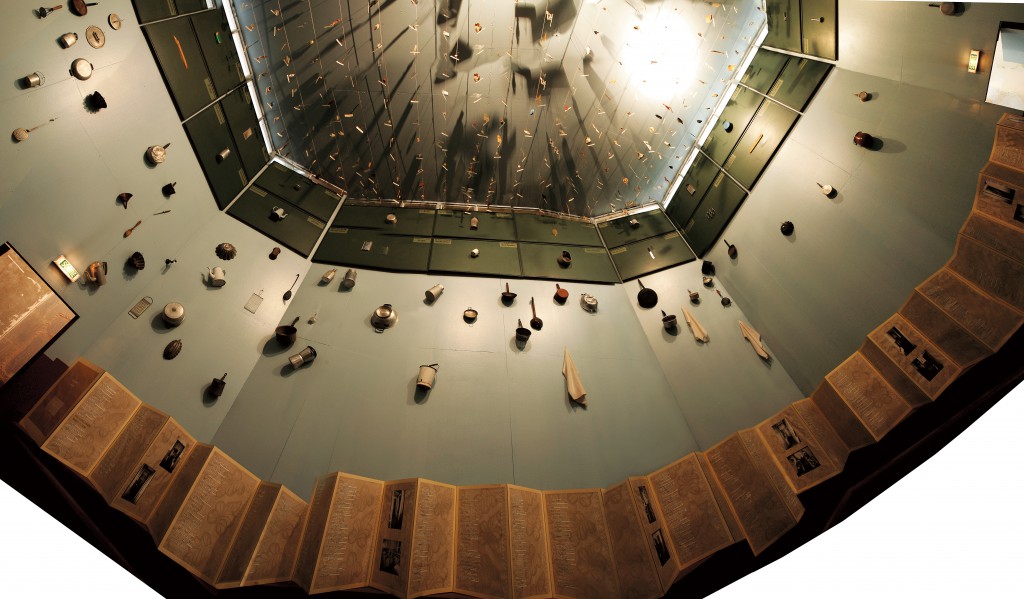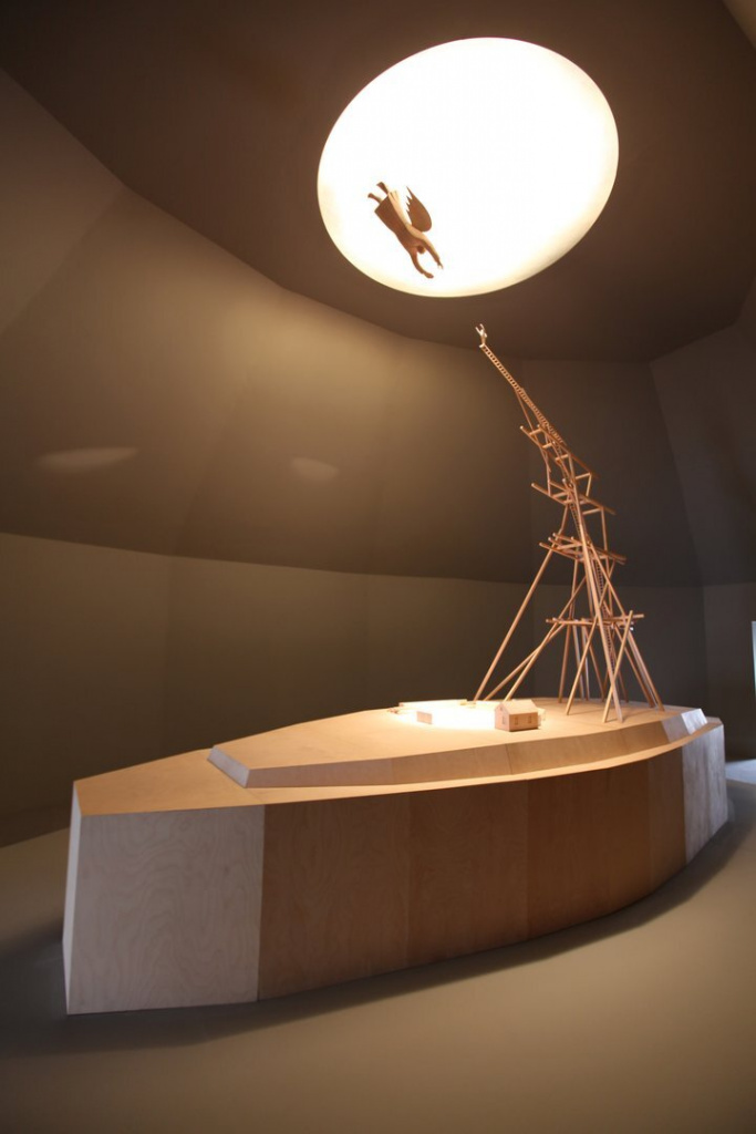 Когда я приехал устанавливать экспозицию, то увидел, что предметы, которые я придумал и привез с собой, нельзя было разместить в отведенных им комнатах, потому что в этих комнатах не было… пола! То есть был твердый и устойчивый пол, но визуально и психологически его не было, так как он был выкрашен архитектором в белый цвет так же, как потолок и стены! Я как-то пропустил этот эффект, когда раньше был в музее первый раз – и этот космический эффект, как я его назвал, проявлялся сразу, как только предметы ставились на этот этаж.