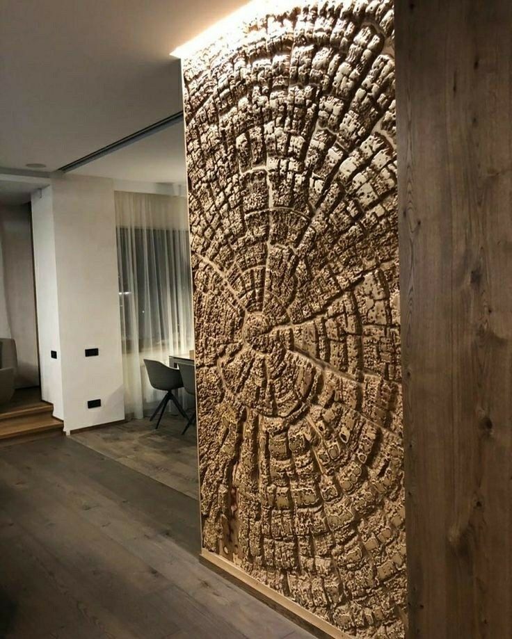 Панно могут заполнять часть стены, зонируя пространство, играть роль изголовья кровати или художественного акцента.