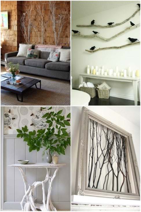 Веточками, зачастую, обплетают зеркала и рамки с фотографиями. Хорошей идеей станет оформление небольшой ветвистой части древесины в качестве элемента для хранения подвесных драгоценностей, которые располагаются на ветке. При этом они хорошо сохраняются, не путаются, и выбрать подходящую вещицу можно довольно быстро.