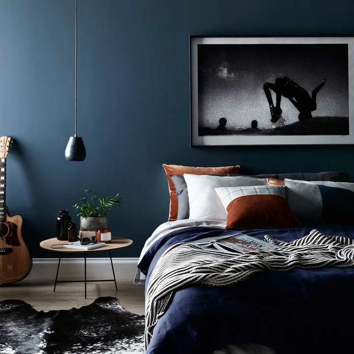 Комната мальчиков. Cтены оклеены текстильными обоями Ralph Lauren Home. На прикроватной тумбе итальянская ваза 1970-х и керамические вазы Роберто Камби, Gallery 88. Арт: Александр Ливанов.