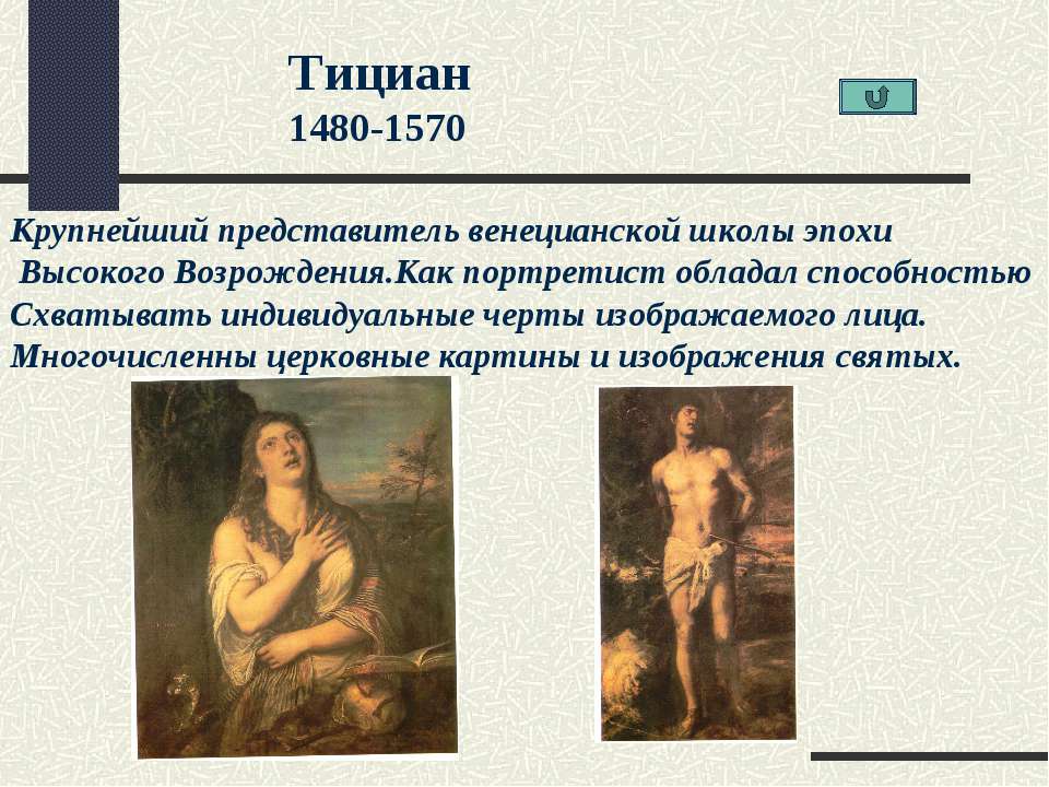 Переосмысливались старые и создавались новые темы. Неустойчивое соединение христианских тем и сюжетов с телесностью и чувственностью вылилось в образы томных Мадонн школы Беллини и Перуджино или Св. Себастьяна, тело которого женственно прекрасно, несмотря на вонзенные в него стрелы язычников. Ангелы в изображении итальянских художников походили на шаловливых малышей — путти, а те, в свою очередь, — на античных эротов. Сочетание возвышенной духовности, идеалистичности и открытой чувственности, иногда даже сладострастия, нашло выражение в многочисленных «Венерах».
