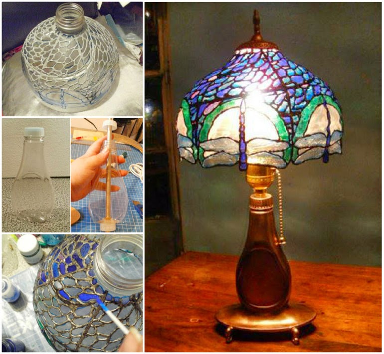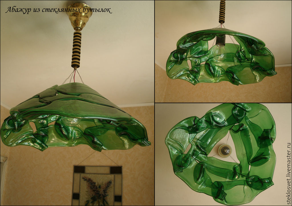 - Пластик. При этом даже пластиковые бутылки и посуда могут стать основным сырьем для создания необычного абажура.