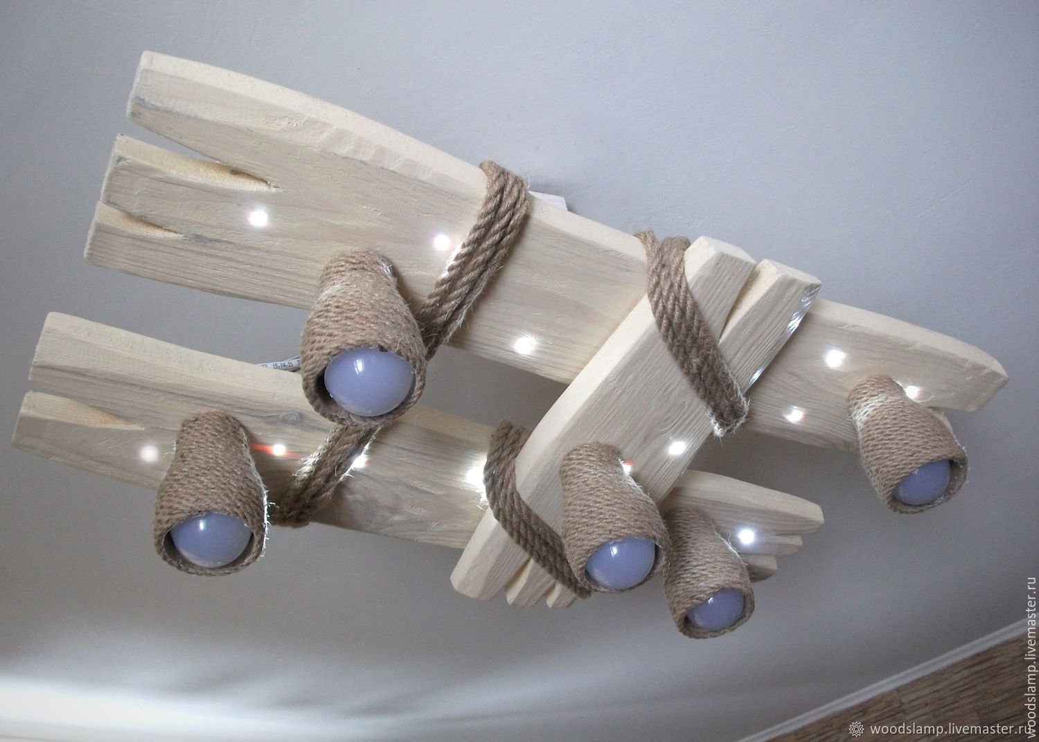 Подготовив все эти материалы и инструменты, можно приступать к работе. Последовательность создания люстры своими руками из дерева следующая: