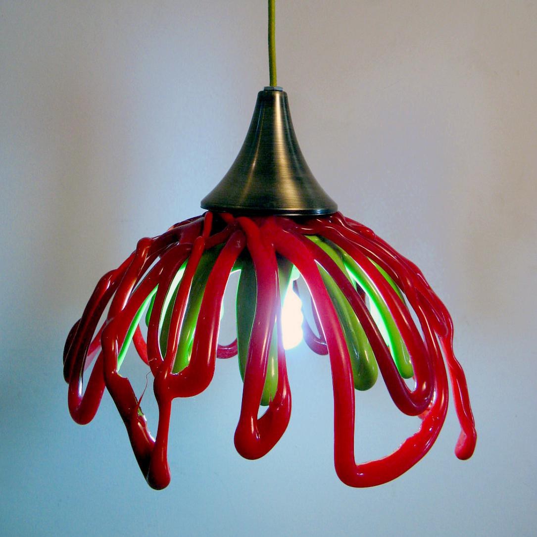 Казалось бы, ну совершенно не предназначенные для создания люстры материалы. Но стоит только включить фантазию — и всё становится возможным. Главное, чтобы такая супернеобычная люстра удачно вписалась в интерьер жилища. Ведь, как известно, люстра не только обеспечивает освещение в квартире, но и придаёт интерьеру законченность, звучит, так сказать, финальным аккордом.