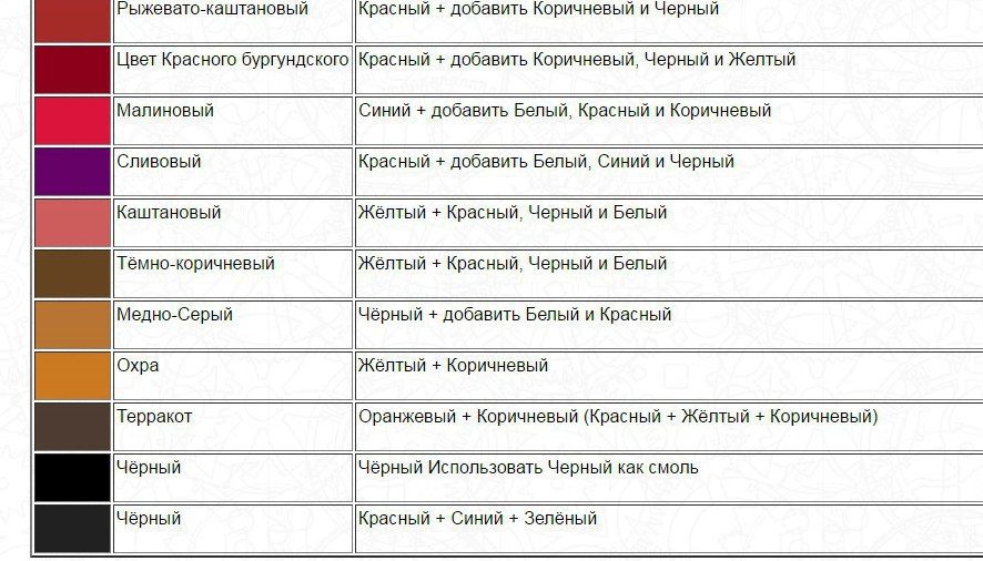 Из каких цветов можно сделать коричневый: Коричневый цвет — как его получить (из каких цветов сделать)