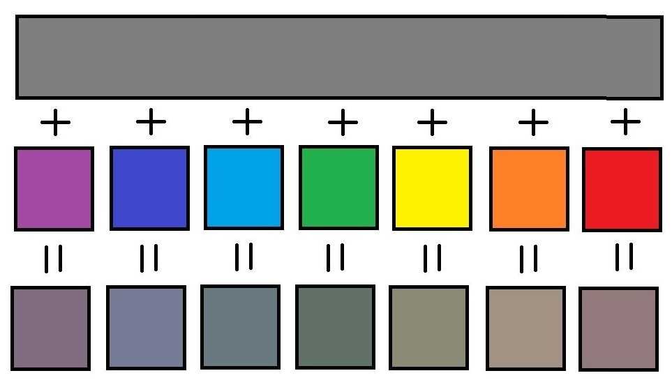 Примером цвета, который не является чистым, может быть что угодно, кроме трех основных цветов, упомянутых выше. Если мы посмотрим на оранжевый цвет, мы на самом деле увидим комбинацию желтой и красной длин волн одновременно. Коричневый получается, когда мы интерпретируем много разных цветов одновременно, и наш мозг не может интерпретировать их отчетливо.