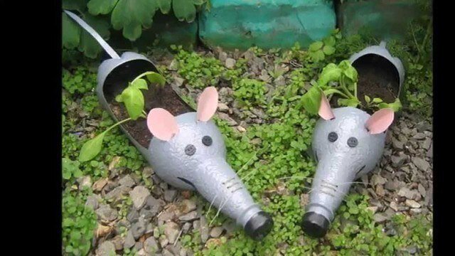 Декор сада: горшки для цветов из пластиковых бутылок Кашпо из пластиковых бутылок Ежик из травы и бутылки Клумба-лебедь из бутылок Оленья упряжка из бутылок и покрышекА вот видео идеи, как можно использовать бутылки для декора огорода и для того, чтобы сделать его более функциональным: