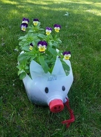 Как сделать поросенка из пластиковых бутылокПонадобится всего либо большая пяти-литровая пластиковая бутылка для тела поросенка и несколько обычных бутылок для ножек и ушек.