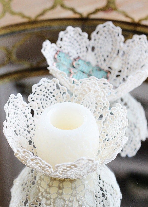 Не знаете куда применить остатки кружев? Или может быть у вас остались вязанные салфетки от бабушки? Воспользуйтесь нашей подборкой идей по созданию оригинального декора предметов интерьера.