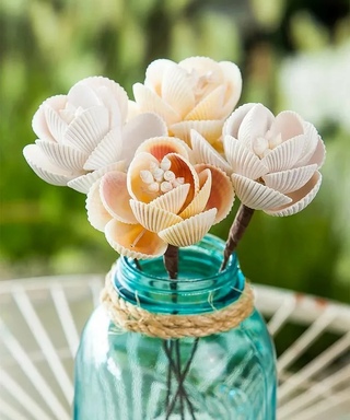 Прелестная форма и цвет ракушек сама подсказывает идеи для творчества. Так, например, люди стали замечать, что некоторые ракушки удивительным образом похожи на лепестки различных цветов. Так создалось новое направление поделок из ракушек — цветы и букеты.