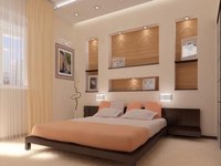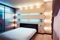Чтобы не отягощать сложной гипсокартонной конструкцией дизайн спальни, ее необходимо украсить подсветкой. Кроме декоративной функции, свет в нише может нести функциональную нагрузку. К примеру, вы любитель чтения перед сном, но можете помешать отдыху своей второй половинки. Тогда ненавязчивое боковое освещение в нише заменит вам ночник.