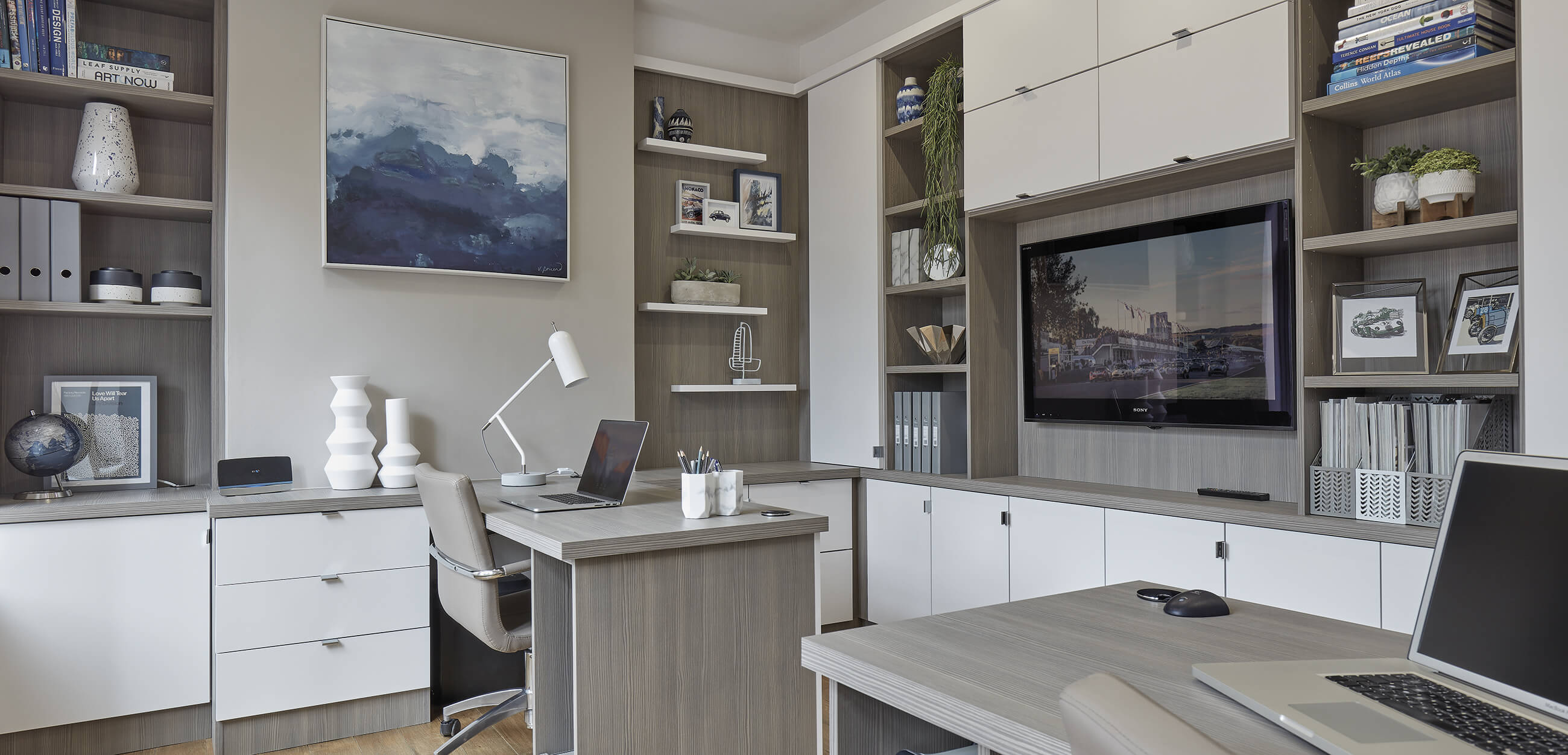 Спальни : Мы часто называем наши встроенные модули «стенками» из-за того, что они эффективно используют пустое пространство в стене. Создайте серию встроенных модулей, чтобы сформировать шкаф в спальне или полноценную рабочую зону с письменным столом, ящиками и книжными полками.