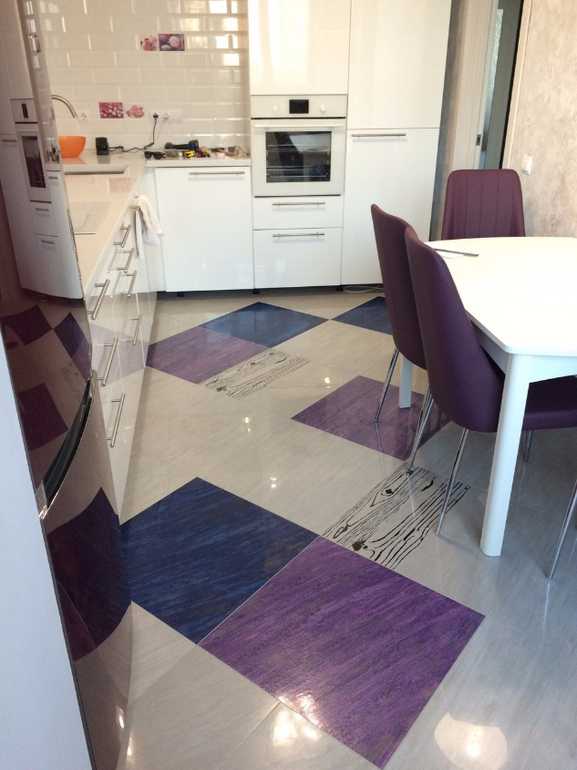 Рассмотрим простой пример диагонального монтажа на полу в кухне: