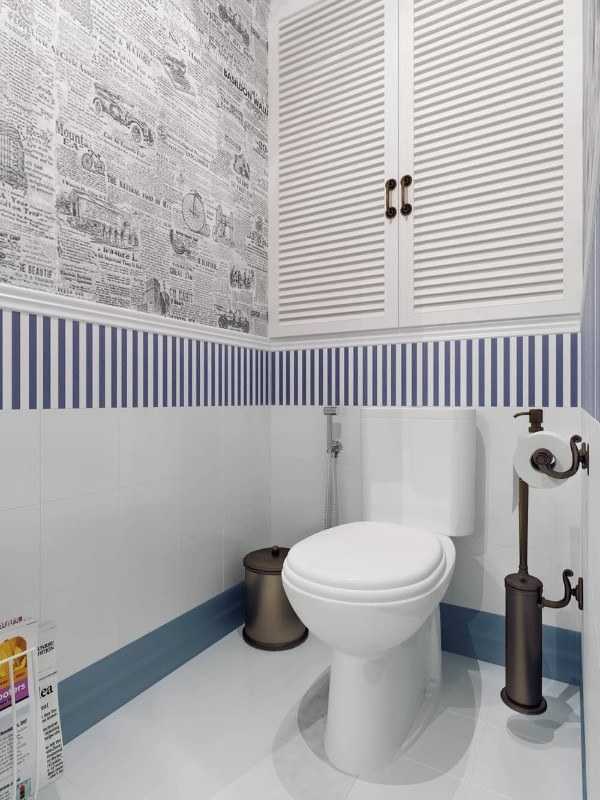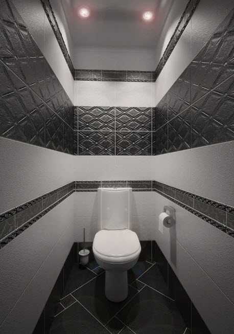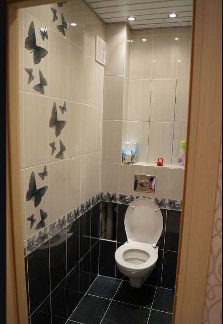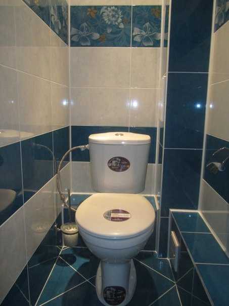 Комбинированная отделка плиткой маленького туалета