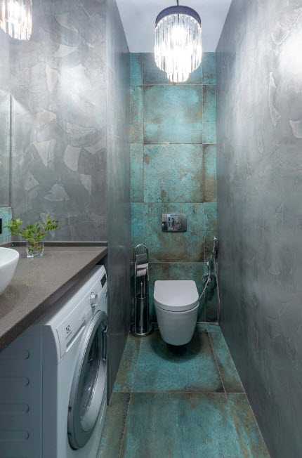 Отделка маленького туалета фактурной плиткой