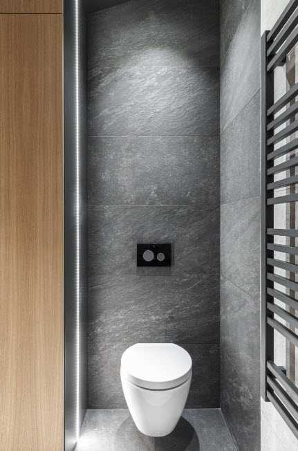 В понимании многих людей, ванная комната и туалет представляют собой одно и то же помещение, даже если они и разделены стеной. Поэтому дизайн туалетной комнаты должен сочетаться с ванной комнатой.