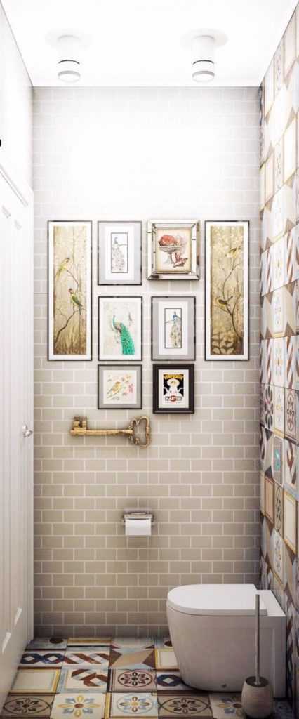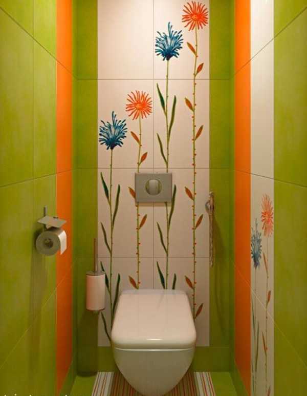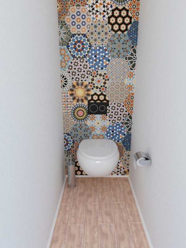 Дизайн маленького туалета с разноцветной плиткой