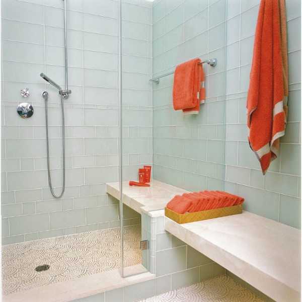 Для небольших помещений идеальным цветом плитки может стать: кремовый или белый, нежно голубой или серебристый, светло-розовый, сиреневый, изумрудный.
