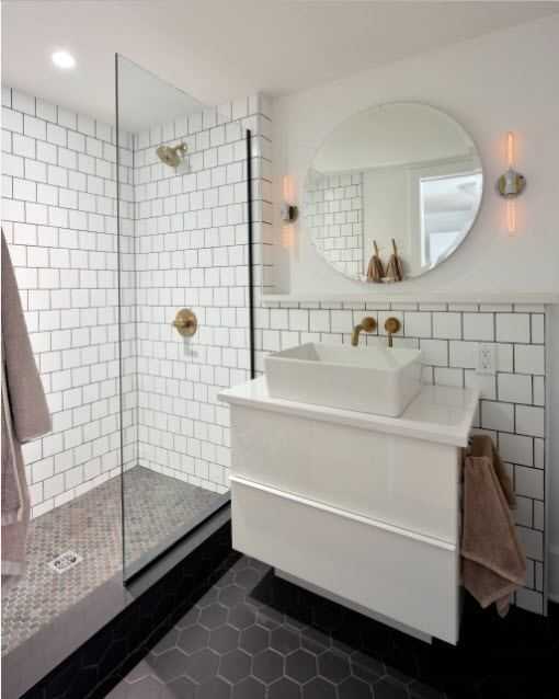 Обратите внимание, как ловко обыграны здесь выступы. Плитка кирпичиком насыщает пространство деталями и помогает уйти от скуки.