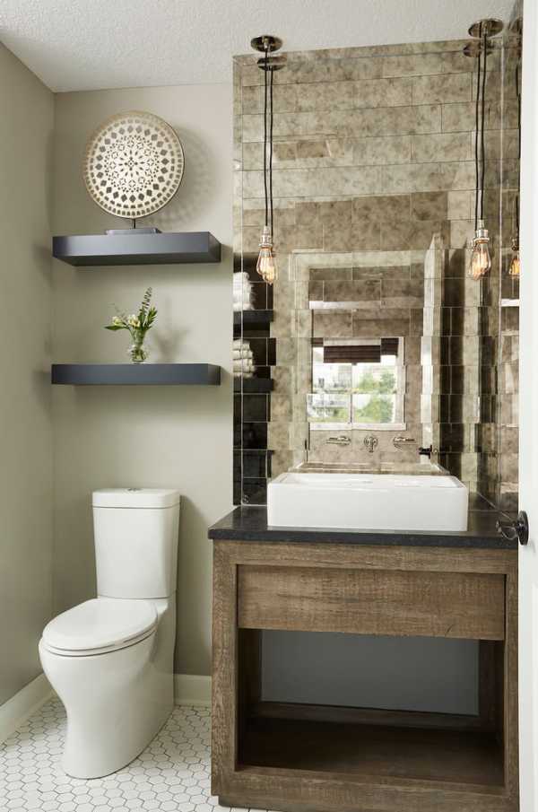 - использовать плитку с зеркальной поверхностью;