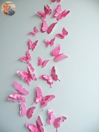Если же у вас стены с рисунком, то такой вариант вам вряд ли подойдет, поскольку на этом фоне такие бабочки потеряются. А можно купить бабочек, изготовленных из самоклеющейся пленки, и наклеить там, где вам захочется.