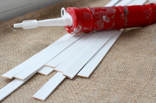 2. Клей наносите прямо на стену. Ровными линиями нарисуйте сетку, не оставляя пустых участков. Используйте только специальный строительный клей «жидкие гвозди».