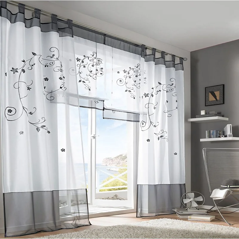 В моде многослойность занавесок, использование всевозможных украшений в виде оригинальных бантов, кистей, держателей. Среди принтов первое место занимают флористические орнаменты. Актуально использование рюшей в качестве окантовки. Это может быть тесьма, кружево, атласные ленты или бахрома.