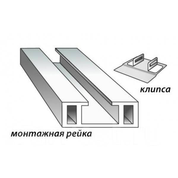 Планка такой обрешетки представляет собой П-образный профиль с загнутыми вовнутрь краями. По такой своеобразной направляющей двигаются кляймеры, при помощи которых собственно и фиксируется пластиковая панель.
