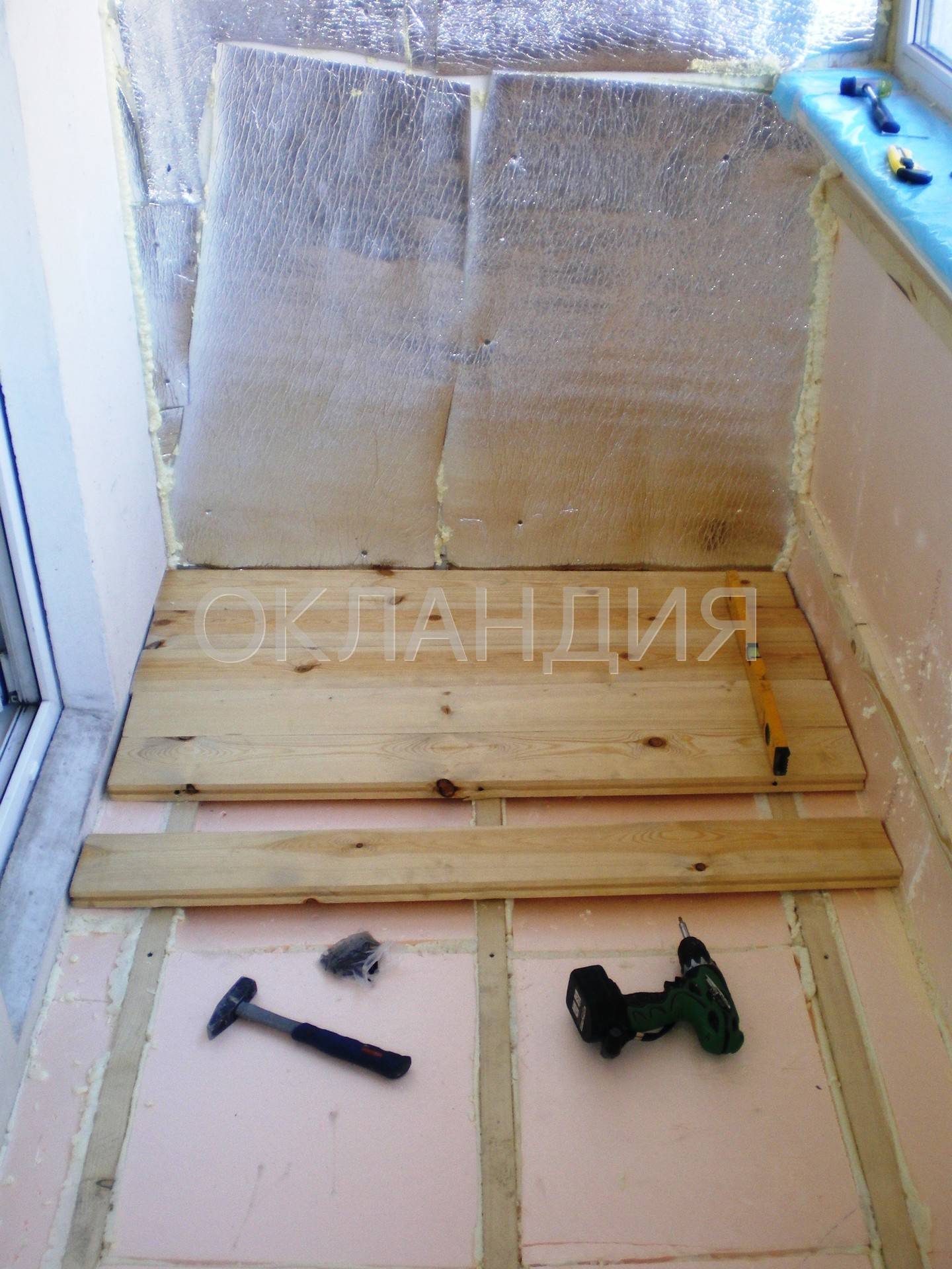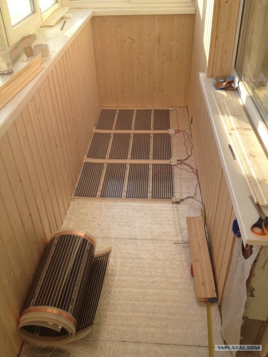 - укладывать нужно с нахлёстом, так, чтобы на 3-4 см утеплитель заходил на стены и раму балкона;
